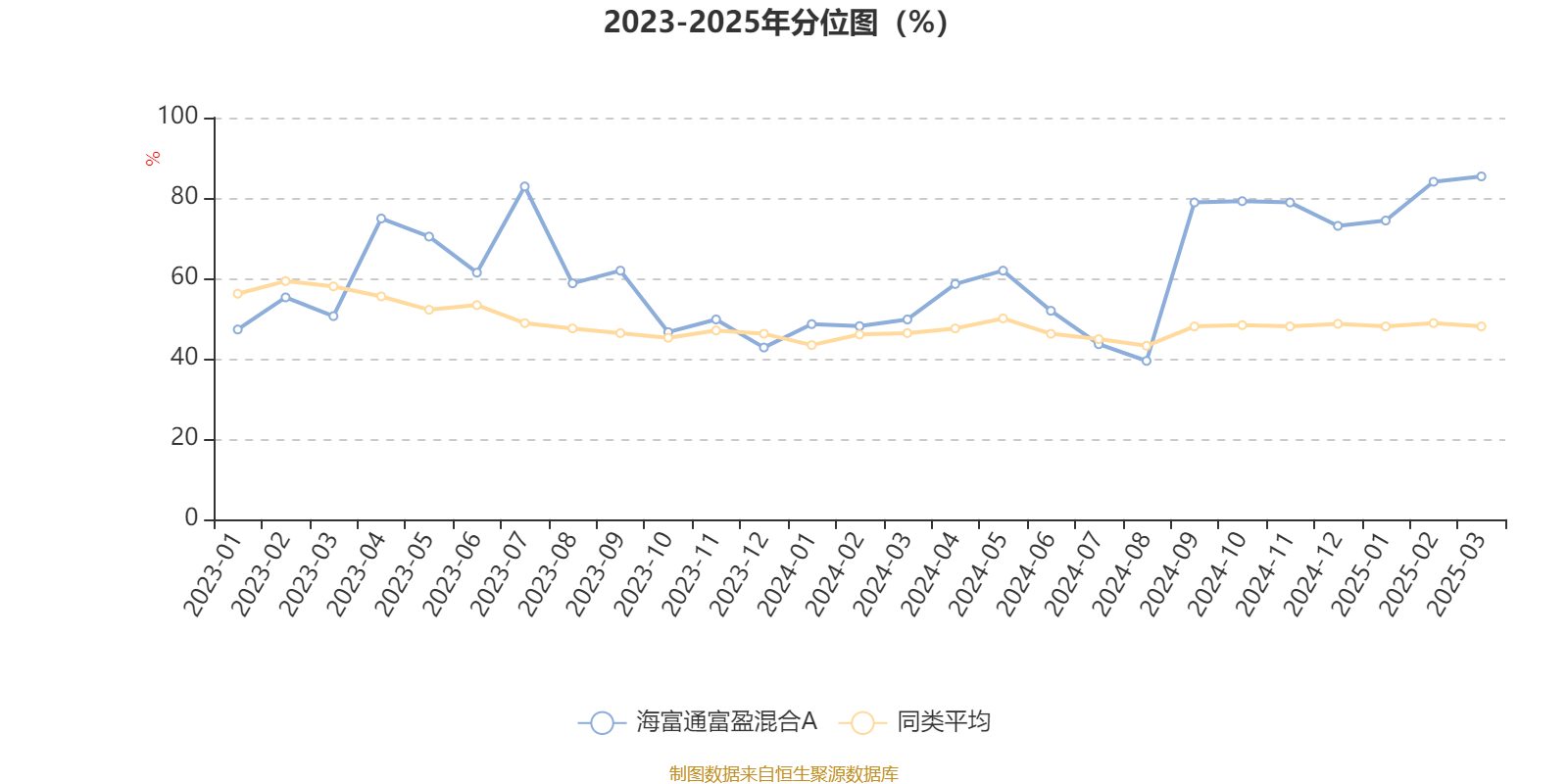 通过所选区间该基金净值增长率分位图,可以观察该基金与同类基金业绩比较情况。图为坐标原点到区间内某时点的净值增长率在同类基金中的分位数。
